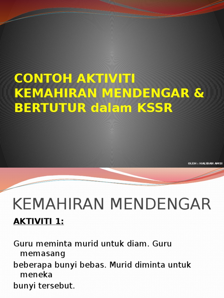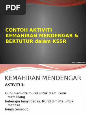 Contoh Aktiviti Kemahiran Mendengar Bertutur Dalam Kssr Pdf